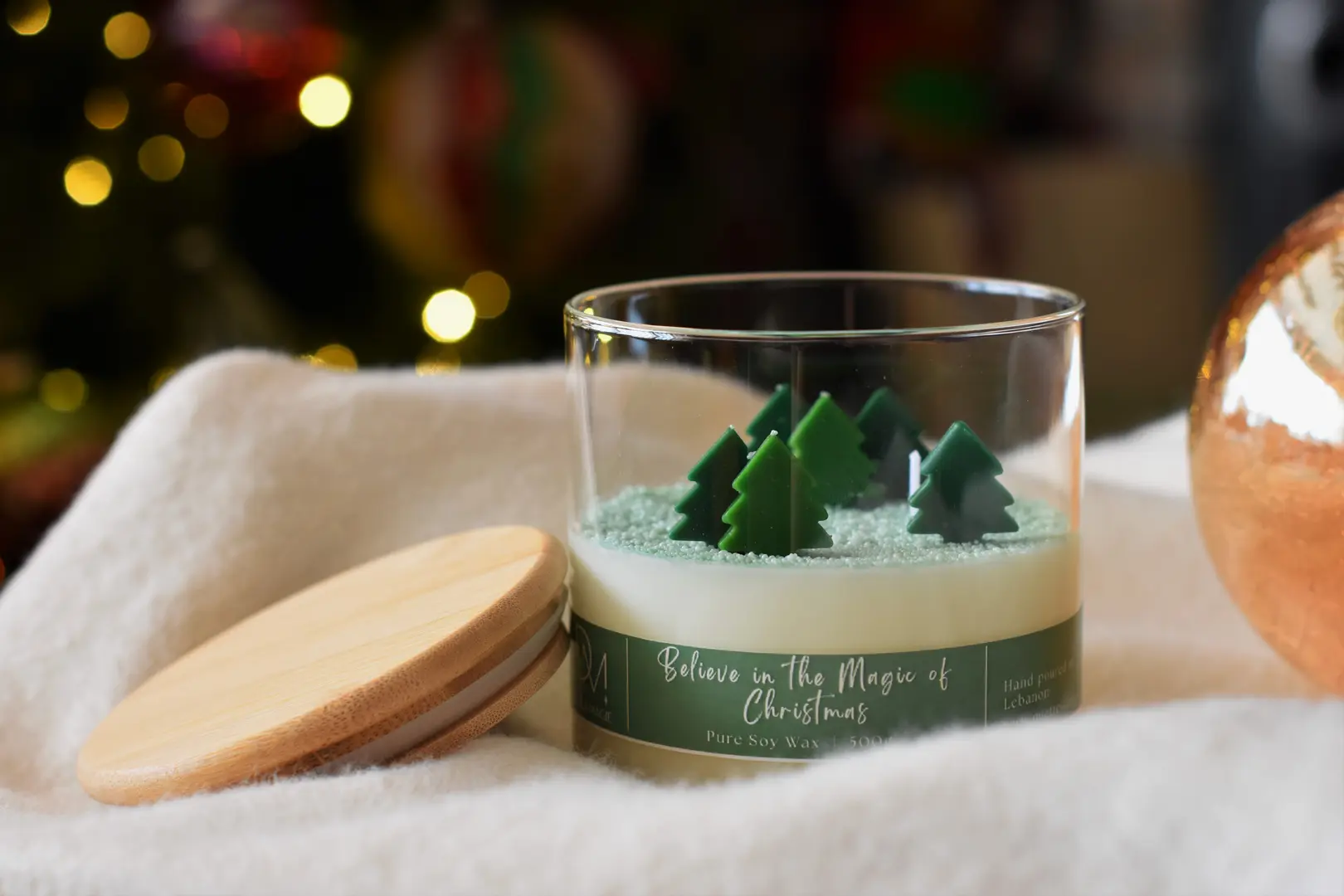 Inspired by the classic song Winter Wonderland, this candle evokes the calm and beauty of a snowy forest, bringing a cozy holiday atmosphere into your home.
